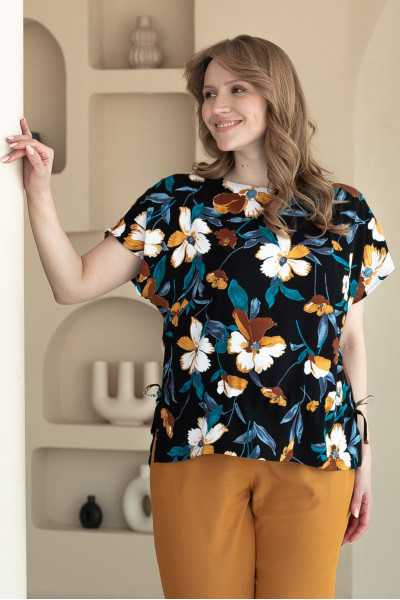 Футболка зі спущеним плечем виготовлена з поєднання 50% віскози та 50% бавовни, що забезпечує м'якість, легкість та приємний комфорт під час носіння. Спущене плече створює розслаблений, сучасний вигляд, а бічні високі розрізи додають ефекту легкості та рухливості. Ця футболка ідеально поєднується з різними стилями, від casual до більш елегантних образів, і стане чудовим вибором для створення легкого та стильного аутфіта.
