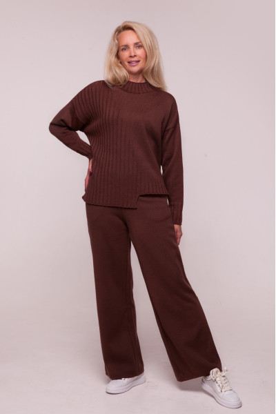 Стильні трикотажні вязані штани прямого крою — ідеальний вибір для комфорту та елегантності. Виготовлені з м'якої і еластичної пряжі, вони забезпечують відчуття легкості та свободи рухів. Практичні кишені додають функціональності, а зручна резинка в поясі забезпечує ідеальну посадку на будь-яку фігуру. Ці штани легко поєднуються з різноманітними верхами, що робить їх універсальним елементом вашого гардеробу для повсякденного носіння або особливих випадків. Станьте центром уваги завдяки стильному, але простому дизайну!