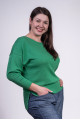 Трикотажний джемпер неймовірного кольору з круглим вирізом, подовженою спинкою, спущеним плечем. На спинці мотузочки для зав'язки, які придають моделі більш романтичного вигляду. Джемпер гарно пасуватиме до трикотажних брюк, джинсів, спідниць.