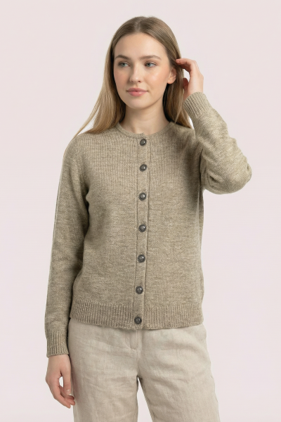 Вкорочений кардиган із 70% вовни — теплий, м’який і приємний до тіла. Акуратний силует та вінтажні ґудзики додають образу витонченого характеру. Ідеальний для стильних шарів у прохолодні дні.