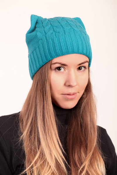Модель Л 783 - теплая женская шапка с ушками, выполненная из качественной полушерсти крупной рельефной вязки. Цвет бирюза. Дополнительно изделие утеплено внутри микрофлисом. Подойдет на голову с обхватом 55-57 см.