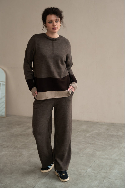 Трикотажні штани прямого крою з високою посадкою — комфортна та універсальна модель для щоденного носіння. Висока посадка красиво підкреслює талію та забезпечує зручну посадку, а прямий силует візуально витягує фігуру. Практичні кишені додають функціональності та роблять модель ще більш зручною.